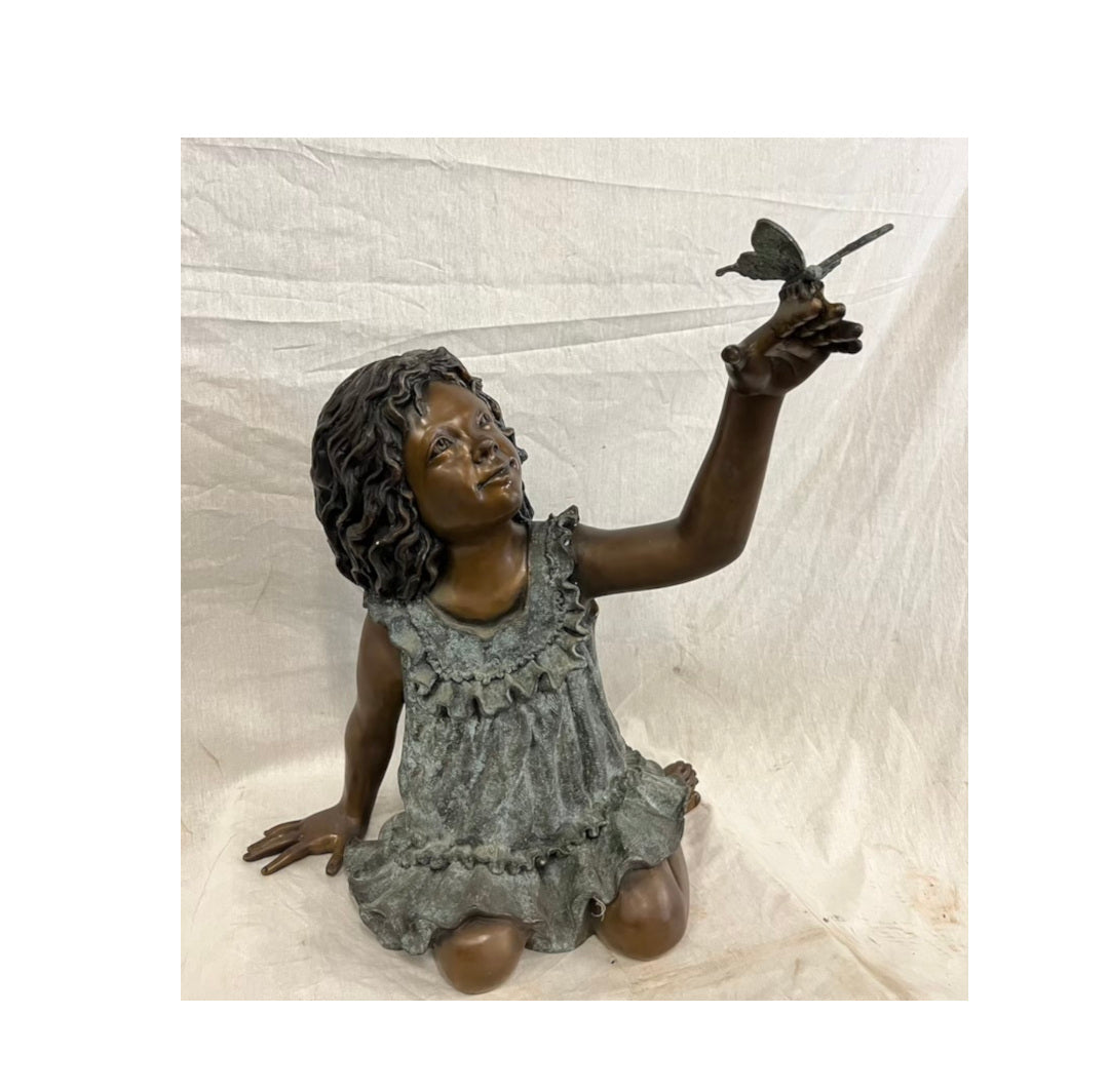 Bronze Skulptur "Mädchen mit Schmetterling" - vintage-shop-24