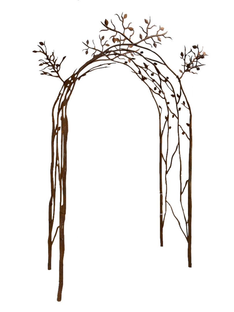 Garten Rankhilfe - Rosenbogen verziert mit Zweigen rostig Eisen